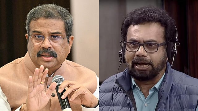 കേന്ദ്രമന്ത്രി ധർമേന്ദ്ര പ്രധാൻ, ജോൺ ബ്രിട്ടാസ് എംപി Source: Files