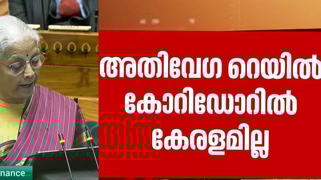കേന്ദ്രബജറ്റിൽ കേരളത്തിന് അതിവേഗ റെയിൽ ഇല്ല. ചെന്നൈയും ബെംഗളൂരുവുമുൾപ്പെടെ 7 അതിവേഗ റെയിൽ കോറിഡോറുകൾ പ്രഖ്യാപിച്ചതിലാണ് കൊച്ചിയും തിരുവനന്തപുരവും ഒഴിവാക്കിയത്. കേരളത്തെ ഒഴിവാക്കിയതിനെ തുടർന്ന് പ്രതിപക്ഷ എംപിമാർ "കേരളം..കേരളം "എന്ന് ഉറക്കെ വിളിച്ച് ബഹളമുണ്ടാക്കി.