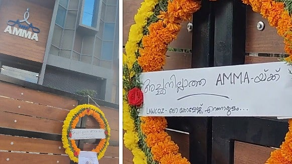 ഹേമ കമ്മിറ്റി റിപ്പോര്ട്ട് പുറത്തുവന്നതിന് പിന്നാലെയുള്ള സ്ത്രീകളുടെ വെളിപ്പെടുത്തലുകളിൽ കലൂരിലെ AMMA ഓഫീസിന് മുന്നിൽ പ്രതിഷേധവുമായി എറണാകുളം ലോ കോളേജ് വിദ്യാർഥികൾ. ഓഫീസിന് മുന്നിലെ ഗേറ്റിൽ റീത്ത് വെച്ചാണ് വിദ്യാർഥികൾ പ്രതിഷേധിച്ചത്. അച്ഛൻ ഇല്ലാത്ത 'അമ്മ'യ്ക്ക് എന്ന വാചകത്തോടെയാണ് റീത്ത് സമർപ്പിച്ചത്.