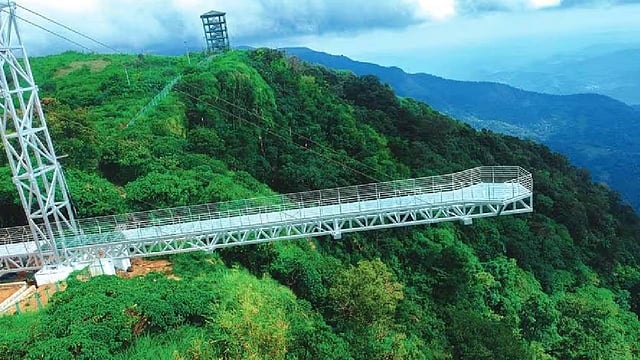 സമുദ്രനിരപ്പിൽനിന്ന് 3600 അടി ഉയരത്തിലുള്ള വാഗമണ്ണിൽ 120 അടി നീളത്തിൽ ജർമനിയിൽനിന്ന് ഇറക്കുമതി ചെയ്ത ഗ്ലാസിൽ നിർമിച്ച പാലത്തിനു മൂന്ന് കോടിയായിരുന്നു ചെലവ്. 35 ടൺ സ്റ്റീലാണ് നിർമാണത്തിന് ഉപയോഗിച്ചത്. ഒരേസമയം 15പേർക്ക് കയറാം. മുണ്ടക്കയം, കൂട്ടിക്കൽ, കൊക്കയാർ മേഖലകൾ കാണാനാകും. ആകാശ ഊഞ്ഞാൽ, സ്കൈ സൈക്ലിങ്, സ്കൈ റോളർ, റോക്കറ്റ് ഇജക്ടർ, ഫ്രീഫോൾ, ജയന്റ് സ്വിങ്, സിപ്ലൈൻ തുടങ്ങിയവയും സാഹസിക പാർക്കിലുണ്ട്. 250 രൂപയാണ് പ്രവേശനഫീസ്.