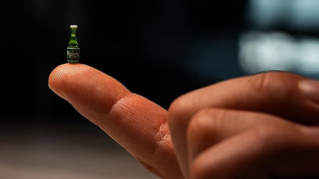 വെറും 12 മില്ലീ മീറ്റർ മാത്രമുള്ള കുപ്പിയിൽ 0.005 മില്ലീ ലിറ്റർ ബിയർ മാത്രമാണ് ഉണ്ടാകുക. ആ ഒരു തുള്ളി നോൺ ആൽക്കഹോളിക്ക് ബിയറാകും. കുഞ്ഞൻ ബിയറിൻ്റെ ചിത്രങ്ങളും കമ്പനി ഇതിനകം പുറത്തുവിട്ടിട്ടുണ്ട്. കുഞ്ഞൻ ബിയർ ഒരു വിരൽതുമ്പിൽ വച്ചിരിക്കുന്ന ഫോട്ടോയും സാധാരണ വലുപ്പമുള്ള ബിയർ കുപ്പിയിൽ കുഞ്ഞൻ ബിയർ എടുത്ത് വച്ചരിക്കുന്ന ഫോട്ടോയുമാണ് കാൾസ്ബെർഗ് പുറത്തുവിട്ടത്. ചിത്രങ്ങൾ എഐ ജനറേറ്റഡ് അല്ലെന്ന അറിയിപ്പും കമ്പനി പുറത്തുവിട്ടിട്ടുണ്ട്.
