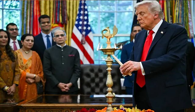 വൈറ്റ് ഹൗസില് ദീപാവലി ആഘോഷങ്ങളുടെ ഭാഗമായി ദീപം തെളിയിച്ച് യുഎസ് പ്രസിഡന്റ് ഡൊണാള്ഡ് ട്രംപ്. പിന്നാലെ പ്രധാനമന്ത്രി നരേന്ദ്ര മോദിയുമായി കൂടിക്കാഴ്ച നടത്തിയെന്നും ട്രംപ് പറഞ്ഞു. പാകിസ്ഥാനുമായുള്ള സാഹചര്യങ്ങളെക്കുറിച്ചും വ്യാപാര മേഖലകളെക്കുറിച്ചും മോദിയുമായി സംസാരിച്ചെന്നും ട്രംപ് പറഞ്ഞു.