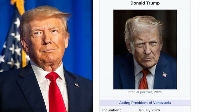 2026 ജനുവരി മുതല് വെനസ്വേലയുടെ ആക്ടിങ് പ്രസിഡന്റ് എന്ന തലക്കെട്ടിലുള്ള വിക്കിപീഡിയ പേജിന് സമാനമായ എഡിറ്റ് ചെയ്ത ചിത്രമാണ് ട്രംപ് പങ്കുവെച്ചിരിക്കുന്നത്. വെനസ്വേലയുടെ പ്രസിഡന്റ് നിക്കോളാസ് മഡൂറോയെ തട്ടിക്കൊണ്ടു പോയതിനു പിന്നാലെയാണ് ട്രംപിന്റെ സ്വയം പ്രഖ്യാപനം.