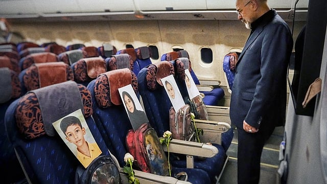 ഈ വിമാനത്തിലെ എന്റെ ഒപ്പമുള്ള യാത്രക്കാര് എന്ന അടിക്കുറിപ്പോടെ ഇറാന് പാര്ലമെന്റിന്റെ സ്പീക്കര് ഗാലിബാഫ് എക്സില് ചിത്രം പങ്കുവെച്ചു. ഗാലിബാഫ് കുട്ടികളുടെ ഫോട്ടോകളിലേക്ക് നോക്കി നില്ക്കുന്ന ചിത്രമടക്കമാണ് എക്സില് പങ്കുവച്ചത്.