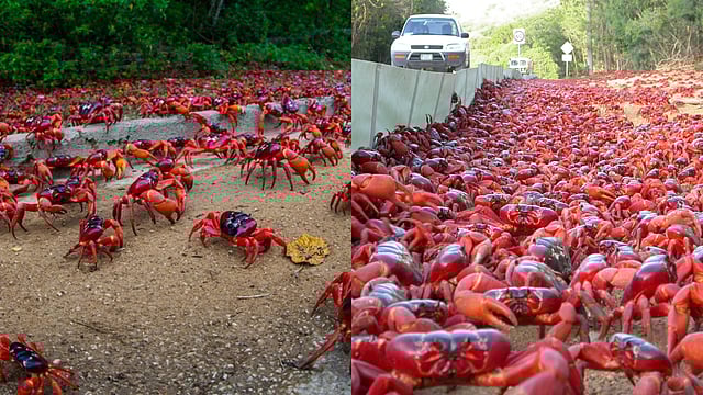 ഓസ്ട്രേലിയ: പടിഞ്ഞാറൻ ഓസ്ട്രേലിയയിലെ റോഡികളിൽ ഇത് കൗതുകക്കാഴ്ചയുടെ കാലമാണ്. ചിലർ കാട്ടിൽ നിന്നും നാട്ടിലേക്ക് ഇറങ്ങിയതാണ് ഇതിന് കാരണം. എല്ലാ വർഷവും നടക്കുന്ന മനോഹരമായ ഒരു പ്രകൃതി പ്രതിഭാസമാണിത്. റെഡ് ക്രാബുകളുടെ കുടിയേറ്റം.