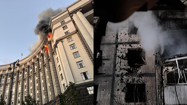 കീവിലെ സർക്കാർ ആസ്ഥാനമായ യുക്രെയ്ന് മന്ത്രിസഭാ മന്ദിരത്തിനും റഷ്യന് മിസൈല് ആക്രമണത്തില് കേടുപാടുകള് സംഭവിച്ചതായി പ്രധാനമന്ത്രി യൂലിയ സ്വൈരിഡെങ്കോ ടെലഗ്രാം പോസ്റ്റിലൂടെ സ്ഥിരീകരിച്ചു. രക്ഷാപ്രവർത്തകർ തീ അണയ്ക്കാനുള്ള ശ്രമത്തിലാണെന്നും ഇവർ കൂട്ടിച്ചേർത്തു. കെട്ടിടത്തിന്റെ മേല്ക്കൂരയില് നിന്ന് പുക ഉയരുന്നതായിട്ടാണ് എഎഫ്പി റിപ്പോർട്ട്.