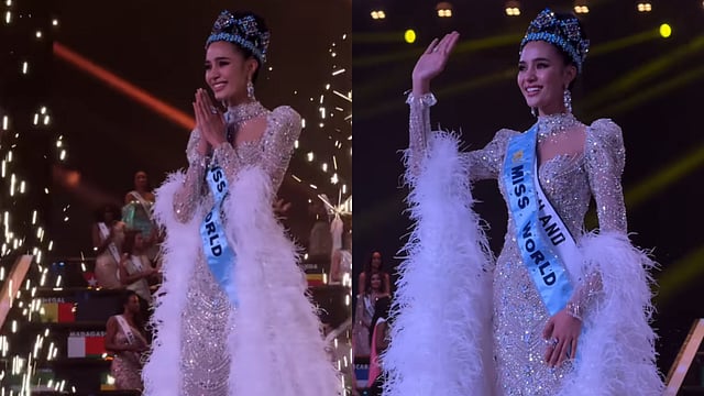 72ാമത് ലോക സുന്ദരിപ്പട്ടം സ്വന്തമാക്കി മിസ് തായ്ലൻഡ് ഓപൽ സുചത ചുങ്സ്രി. ഹൈദരാബാദിലെ ഹൈടെക്സ് എക്സിബിഷൻ സെന്ററിൽ നടന്ന ഫിനാലെ ചടങ്ങിൽ 2024ലെ മിസ് വേൾഡ് ക്രിസ്റ്റീന ഫിസ്കോവ അവരെ കിരീടമണിയിച്ചു. മത്സരത്തിൽ മിസ് എത്യോപ്യ ഹസത് ദെറജ് ആദ്യ റണ്ണർ അപ്പായി. മിസ് പോളണ്ട് മജ ക്ലദ്ജ മൂന്നാം സ്ഥാനത്തും മിസ് മാർട്ടിനിക് ഓർലി ജോചിം നാലാം സ്ഥാനത്തും എത്തി.