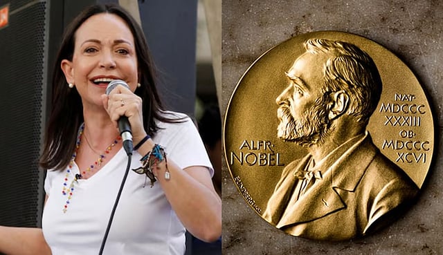 വെനസ്വേലയിലെ പ്രതിപക്ഷ നേതാവായ മരിയയ്ക്ക് വെനസ്വേലയിലെ ജനങ്ങളുടെ അവകാശ പോരാട്ടങ്ങള്ക്കാണ് അവാര്ഡ് ലഭിച്ചത്. നൊബേല് പീസ് പ്രൈസ് വൈബ്സൈറ്റ് നല്കുന്ന വിവരം അനുസരിച്ച് 11 മില്യണ് സ്വീഡിഷ് ക്രൊണോര് ആണ് സമാധാനത്തിനുള്ള നൊബേലിന് ലഭിക്കുന്ന സമ്മാന തുക. ഇത് 10,24,70,742.00 ഇന്ത്യന് രൂപയ്ക്ക് സമാനമാണ്.