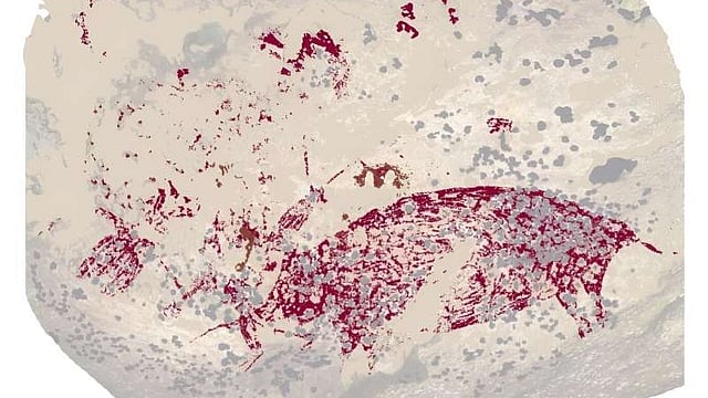 ഇന്തോനേഷ്യൻ ദ്വീപായ സുലവേസിയിലെ ഒരു ഗുഹയിൽ നിന്ന് ശാസ്ത്രജ്ഞർ ലോകത്തിലെ ഏറ്റവും പഴക്കം ചെന്ന കലാസൃഷ്ടി കണ്ടെത്തി. ഒരു വലിയ ചുവന്ന പന്നിക്ക് ചുറ്റും കൂടി നിൽക്കുന്ന മൂന്ന് പേരെ ചിത്രീകരിക്കുന്നതാണ് ഗുഹയിൽ നിന്നും കണ്ടെത്തിയ ചിത്രം. 51,200 വർഷങ്ങൾക്ക് മുമ്പാണ് ഈ ചിത്രം സൃഷ്ടിച്ചതെന്ന് ബുധനാഴ്ച പ്രസിദ്ധീകരിച്ച ഗവേഷണങ്ങളിൽ സൂചിപ്പിക്കുന്നു.
