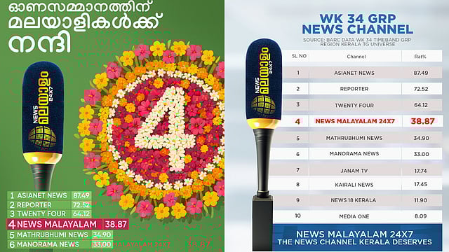 കൊച്ചി: ലോഞ്ച് ചെയ്തു വെറും ഒരു വർഷവും മൂന്ന് മാസവും പിന്നിടുമ്പോഴാണ് പതിറ്റാണ്ടുകളുടെ പ്രവർത്തന പാരമ്പര്യമുള്ള ആറ് മുഴുവൻ സമയ ന്യൂസ് ചാനലുകളെ പിന്തള്ളി ന്യൂസ് മലയാളം 24X7 റേറ്റിംഗ് ചാർട്ടിൽ നാലാമതെത്തിയത്. ഏഷ്യാനെറ്റ് ന്യൂസ്, റിപ്പോർട്ടർ, 24 എന്നീ ചാനലുകൾ മാത്രമാണ് ഇനി ന്യൂസ് മലയാളത്തിന് മുന്നിലുള്ളത്.
