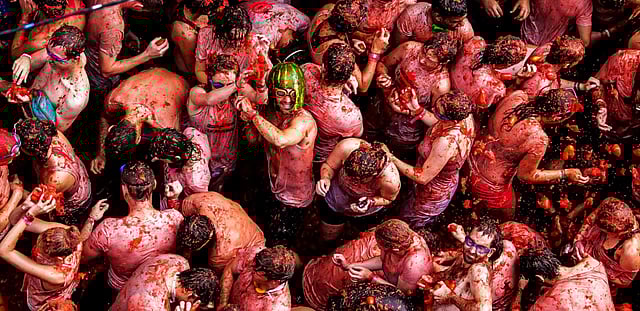120 ടൺ തക്കാളിയാണ് ആഘോഷം കളറാക്കാൻ ഇത്തവണ ഇറക്കിയത്. സ്പെയിനിലെ തെരുവുകൾ തക്കാളിച്ചുവപ്പിൽ തുടുത്തു, ഇത്തവണയും...