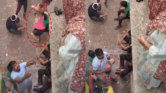 ഒരു വീടിന്റെ ടെറസിൽ നിൽക്കുന്ന ഒരു കൂട്ടം സ്ത്രീകളെയാണ് വീഡിയോയുടെ തുടക്കത്തിൽ കാണാൻ കഴിയുക. റോഡിൽ ഒരു ഘോഷയാത്ര നടക്കുന്നതായും കാണാം. പിന്നീടാണ് ഞെട്ടിക്കുന്ന സംഭവങ്ങൾ അരങ്ങേറുന്നത്. സ്ത്രീകളിൽ ഒരാൾ ടെറസിന്റെ അരികിൽ ഒരു കുഞ്ഞിനെയും പിടിച്ച് അപകടകരമായ രീതിയിൽ ചാരി നിൽക്കുന്നതായി കാണാം. അവൾ കുഞ്ഞിനെ കയ്യിൽ തൂക്കി പിടിച്ചിരിക്കുകയാണ്.
