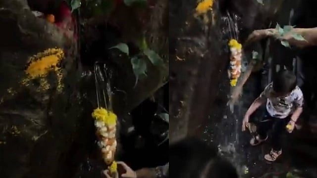പൂനെയിലെ പിംപ്ര പ്രേംലോക് പാർക്കിലെ കാഴ്ചയാണ് വൈറലായിരിക്കുന്നത്. പാർക്കിന് സമീപത്തുള്ള ഒരു ഗുൽമോഹർ മരത്തിന്റെ തടിയിൽ നിന്ന് ജലം ഒഴുകികൊണ്ടിരിക്കുകയാണ്. ഒഴുകിവരുന്നത് പുണ്യജലമാണെന്ന് വിശ്വസിച്ച് നാട്ടുകാരെല്ലാം ഭക്തിപൂർവ്വം ഒത്തുകൂടി. രോഗശാന്തി നൽകാൻ ശക്തിയുള്ള അത്ഭുത ജലം ആണെന്ന് പറഞ്ഞ്, ആളുകൾ മരത്തിന്റെ തടിയിൽ മാലകൾ അർപ്പിക്കുകയും മഞ്ഞളും സിന്ദൂരവും പുരട്ടുകയും ചെയ്യുന്നതായി വൈറൽ വീഡിയയോയിൽ കാണാം.