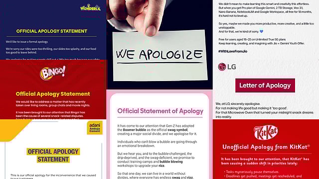 കഴിഞ്ഞ വർഷം ഫിലിപ്പീൻസിലാണ് അപ്പോളജി ലെറ്ററിൻ്റെ തുടക്കം. സോഷ്യൽ മീഡിയയിൽ പങ്കുവെച്ചിരുന്ന ഈ കത്തുകൾക്ക് ആഗോളശ്രദ്ധ ലഭിച്ചുതുടങ്ങിയത് ഈ അടുത്ത കാലത്താണ്. സ്കോഡ, ടി-സീരീസ്, റിലയൻസ് ഡിജിറ്റൽ, അദാനി അംബുജ സിമന്റ്, ഹാൽദിറാംസ്, കെവെന്റേഴ്സ്, ഷെഫ് രൺവീർ ബ്രാർ, ഫോക്സ്വാഗൺ ഡൗൺടൌൺ മുംബൈ വരെ ഇത്തരത്തിൽ രസകരമായ അപ്പോളജി ലെറ്ററുകൾ പങ്കുവച്ചു.