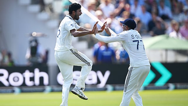 ഇംഗ്ലണ്ടിനായി ഓപ്പണ് ചെയ്ത ബെൻ ഡക്കറ്റ് 12 റണ്സെടുത്ത് മടങ്ങി. സിറാജിനായിരുന്നു വിക്കറ്റ്. 12ാം ഓവറില് സിറാജ് രണ്ടാമത്തെ വിക്കറ്റും പിഴുതു. നാല് റണ്സെടുത്ത ഒലി പോപ്പ് വിക്കറ്റിന് മുന്നില് കുടുങ്ങുകയായിരുന്നു. ഓപ്പണർ സാക് ക്രൗളി നിലയുറപ്പിക്കുമെന്ന് കരുതിയെങ്കിലും 22 റണ്സെടുത്ത് നില്ക്കെ നിതീഷ് കുമാർ പുറത്താക്കി. വമ്പന് അടികളോടെ റണ്സ് ഉയർത്താന് ശ്രമിച്ച ഹാരി ബ്രൂക്കിനെ ആകാശ്ദീപും പുറത്താക്കിയതോടെ ഇംഗ്ലണ്ട് പ്രതിസന്ധിയിലായി.