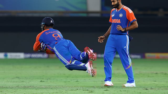 ദുബായ്: ആവേശകരമായ ഏഷ്യൻ പോരിൽ പാകിസ്ഥാനെതിരെ രണ്ട് തകർപ്പൻ ക്യാച്ചുമായി കളം നിറഞ്ഞ് ഇന്ത്യൻ വിക്കറ്റ് കീപ്പർ ബാറ്റർ സഞ്ജു സാംസൺ. മത്സരത്തിൽ പാക് നായകൻ സൽമാൻ അലി ആഗയെ പുറത്താക്കിയ പറക്കും ക്യാച്ചാണ് ഇപ്പോൾ താരം.