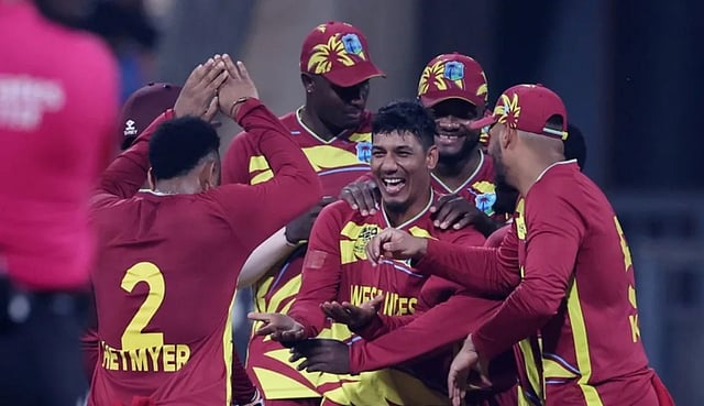വെസ്റ്റ് ഇന്ഡീസിന്റേത് മികച്ച തുടക്കമായിരുന്നില്ലെങ്കിലും ഷിമ്രോണിലൂടെയാണ് കളി തിരിച്ചുപിടിച്ചത്. ഷിമ്രോണ് 12 പന്തില് 23 റണ്സ് നേടി. റോസ്റ്റണ് ചേസ് 34 റണ്സും റുഥര്ഫോര്ഡ് 76 റണ്സും നേടി. 33 റണ്സ് നേടിയ ജേസണ് ഹോള്ഡര് ആണ് വിന്ഡീസിനായി പൊരുതി സ്കോര് ചെയ്ത മറ്റൊരു താരം.