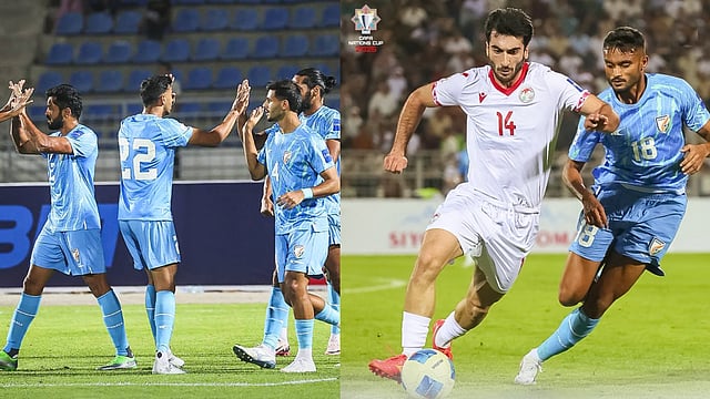 13 മിനിറ്റുകള്ക്കുള്ളില് രണ്ട് കിടിലൻ ഗോളുകളാണ് എതിരാളികളുടെ വലയിലേക്ക് ഇന്ത്യ തൊടുത്തത്. മത്സരം തുടങ്ങി അഞ്ചാം മിനിറ്റില് തന്നെ ഇന്ത്യ താജിക്കിസ്ഥാനെ ഞെട്ടിച്ചു. മലയാളി താരം ഉവൈസിന്റെ ത്രോയില് നിന്നുള്ള അന്വര് അലിയുടെ ഹെഡ്ഡര് ഗോളാണ് ഇന്ത്യയെ ആദ്യം മുന്നിലെത്തിച്ചത്. 13-ാം മിനിറ്റില് സെൻ്റര് ബാക്ക് സന്ദേശ് ജിങ്കന് ഇന്ത്യയുടെ രണ്ടാം ഗോളും നേടി.