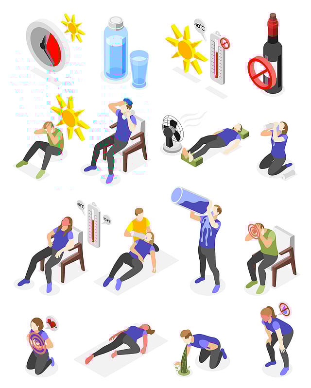 കണ്ണുകള് കുഴിഞ്ഞതായി തോന്നുക, ഹൃദയം സാധാരണയേക്കാള് വേഗത്തില് മിടിക്കുക, തലകറക്കം അനുഭവപ്പെടുക, ബോധക്ഷയം എന്നിവയും നിര്ജലീകരണം മൂലമാകാം.