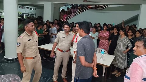 കഴിഞ്ഞ ദിവസം വൈകുന്നേരമാണ് വിദ്യാർഥികള് ശുചിമുറിയിൽ ക്യാമറ കണ്ടെത്തിയത്. ഇതിന് പിന്നാലെ രാത്രി ഏഴ് മണിക്ക് വിദ്യാർഥികളുടെ നേതൃത്വത്തില് നടന്ന പ്രതിഷേധം ഇന്ന് രാവിലെ വരെ നീണ്ടു. കോളേജ് അധികാരികള് ഉത്തരവാദിത്തം ഏറ്റെടുത്ത് കുറ്റക്കാർക്കെതിരെ നടപടിയെടുക്കണമെന്നാണ് വിദ്യാർഥികളുടെ ആവശ്യം.